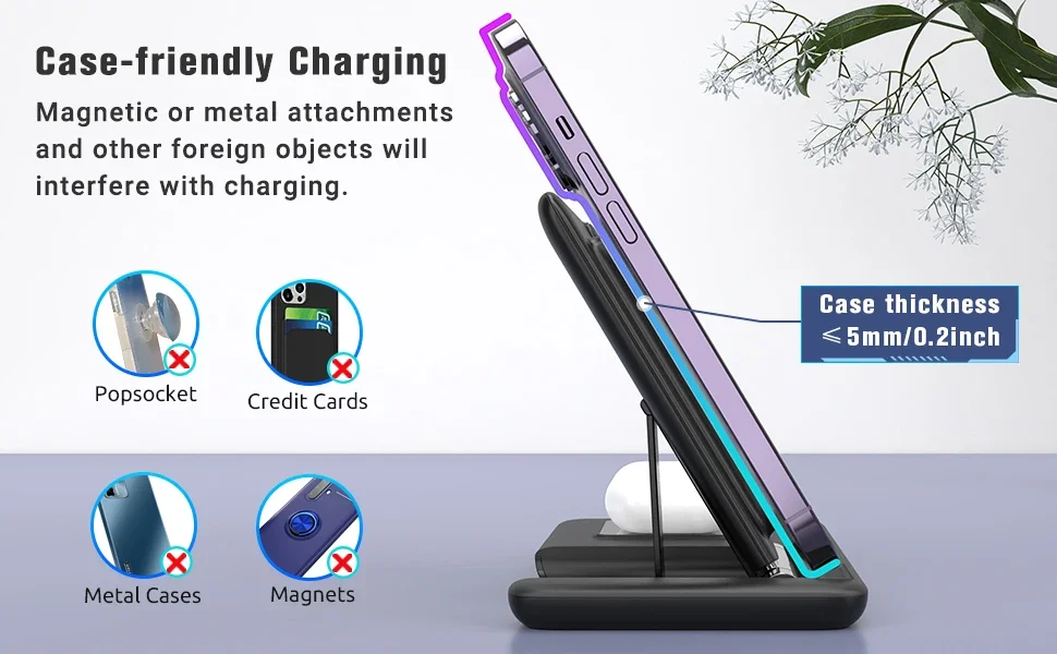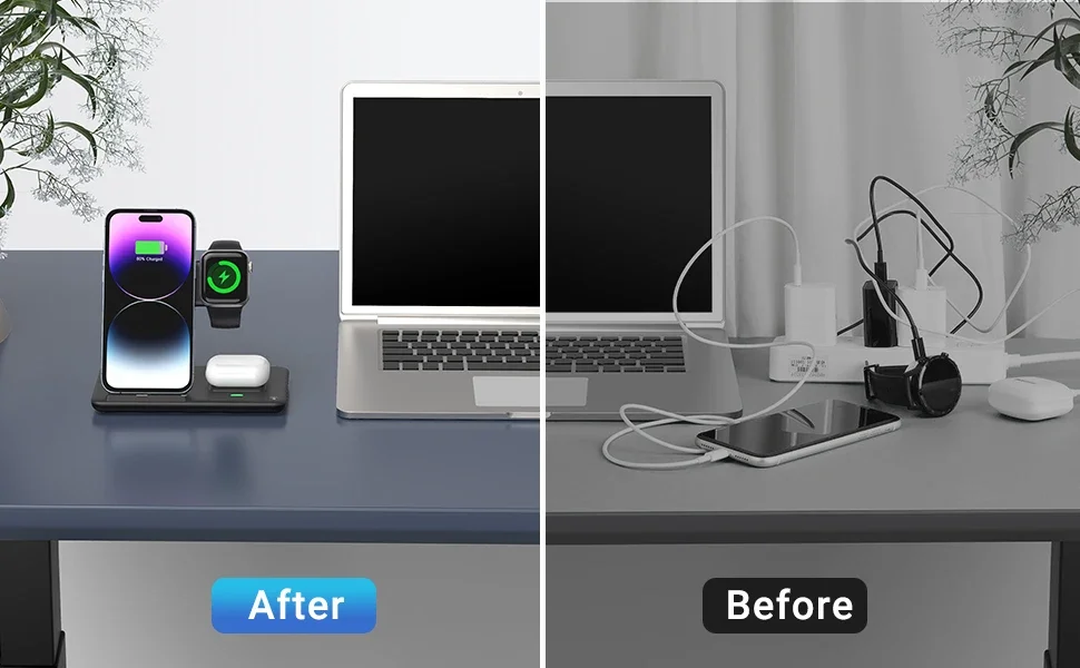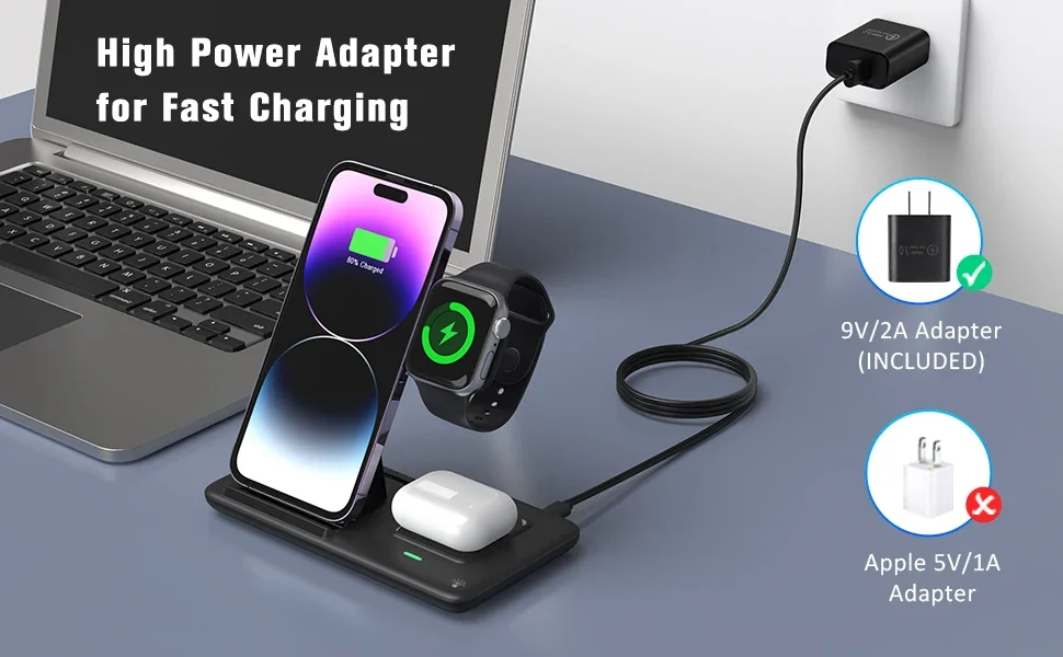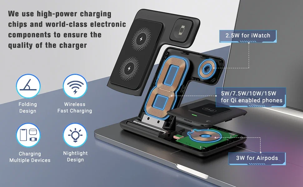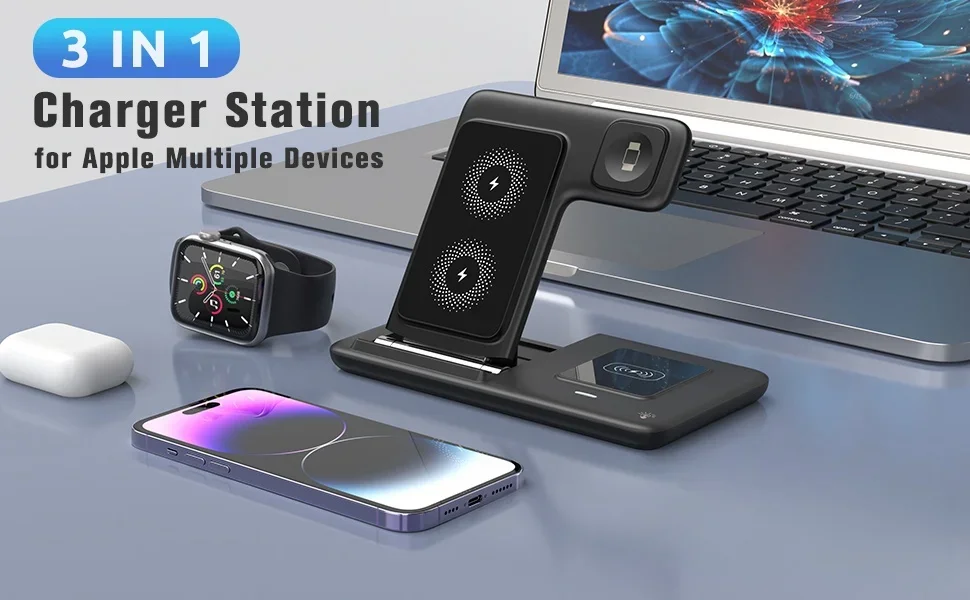 2025 Fast Wireless Charger Stand 3 in 1 Foldable Charging Station For iPhone 15 14 13 12 11 Apple Watch 9 8 7 6 5 Airpods Pro