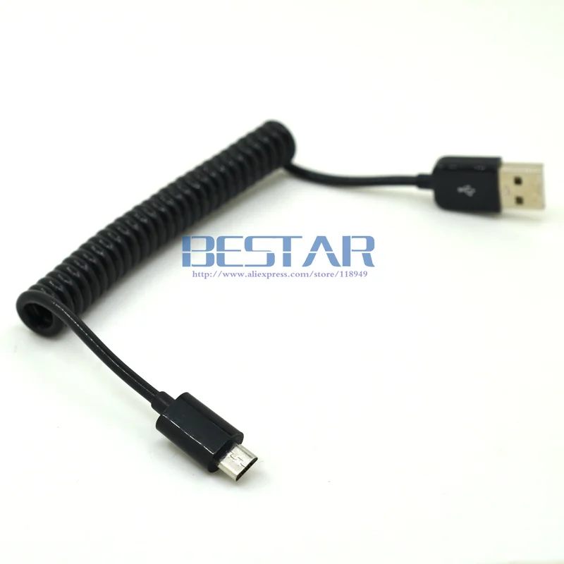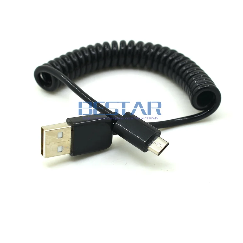 Spring Coiled USB 2.0 Male to Micro USB 5 Pin Data Sync Charger Cable Cord for Smartphone
