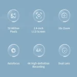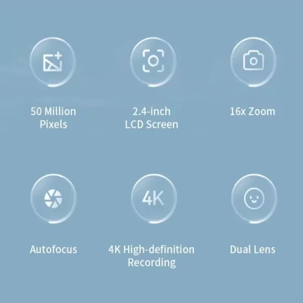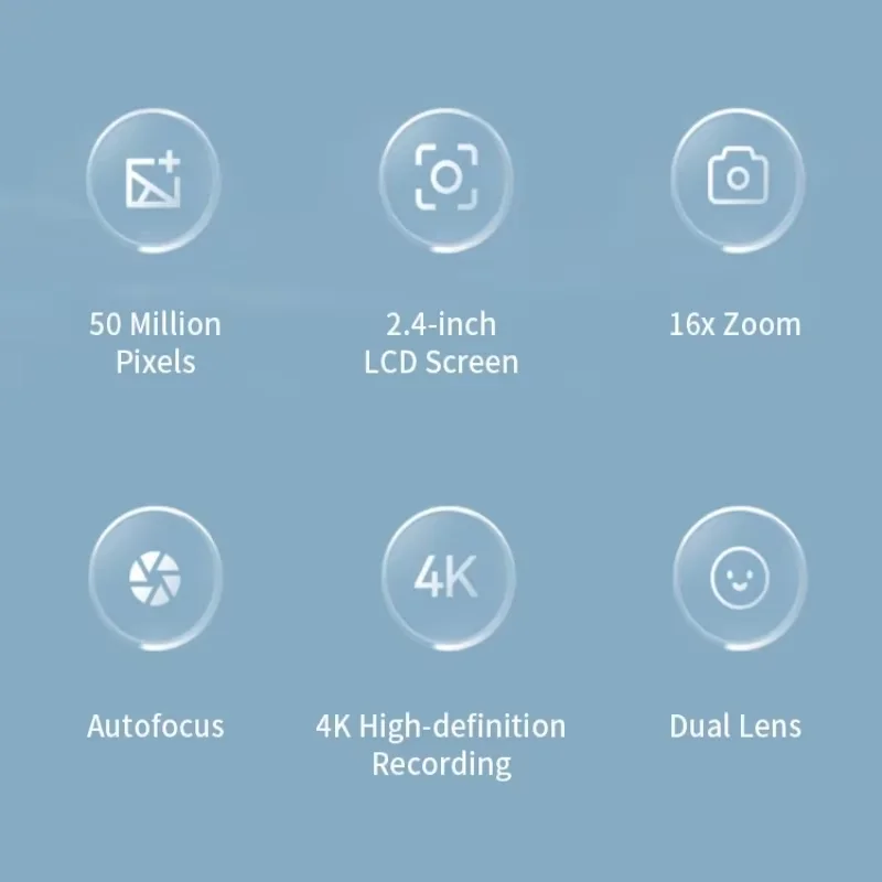 4K Digital Camera 50 Megapixels HD Photography Travel Selfie Camera 2.4 inch Screen Entry-Level Kids Campus Selfie Mini Camera