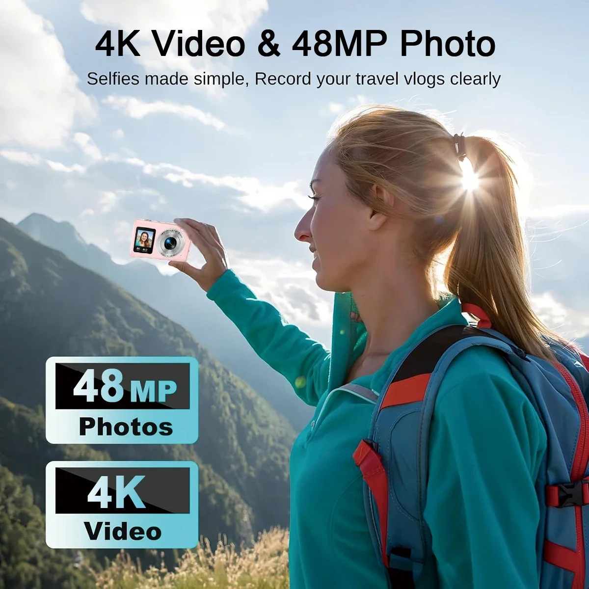4K HD Digital Camera for Students Dual Color Display Portable Digital Camera Ultra Wide Angle Super Zoom Kids Travel Photo Girl