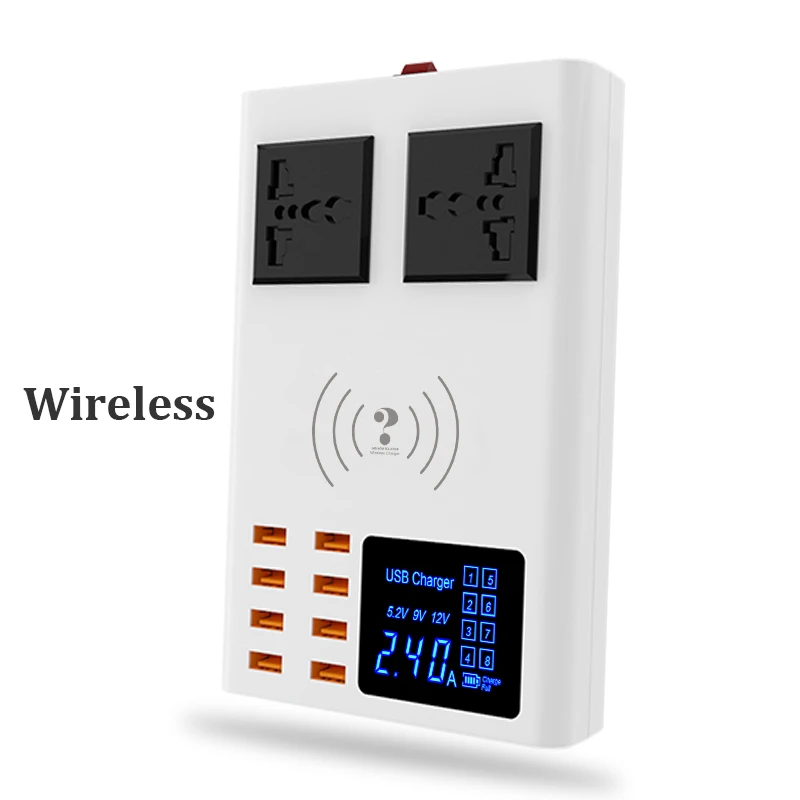 8 Ports Wireless Charger Led Digital Display USB Charger For Android iPhone Adapter Phone Fast Charger For xiaomi huawei samsung