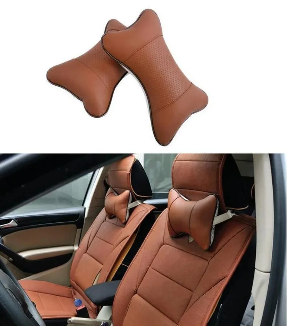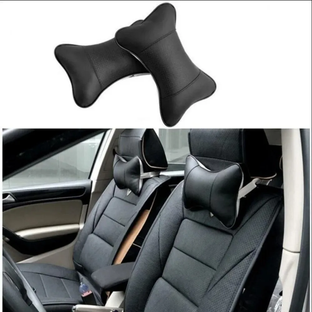 Car Neck Pillows Both Side Pu Leather Headrest For Head Pain Relief Filled Fiber Universal Car Pillow