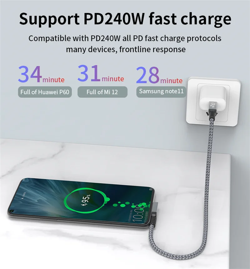 Elbow Thunderbolt 4 Cable 40Gbps USB 4 Data Cable Type C to Type C PD 240W Fast Charging Cord for iPhone 15 Pro SSD Power Bank