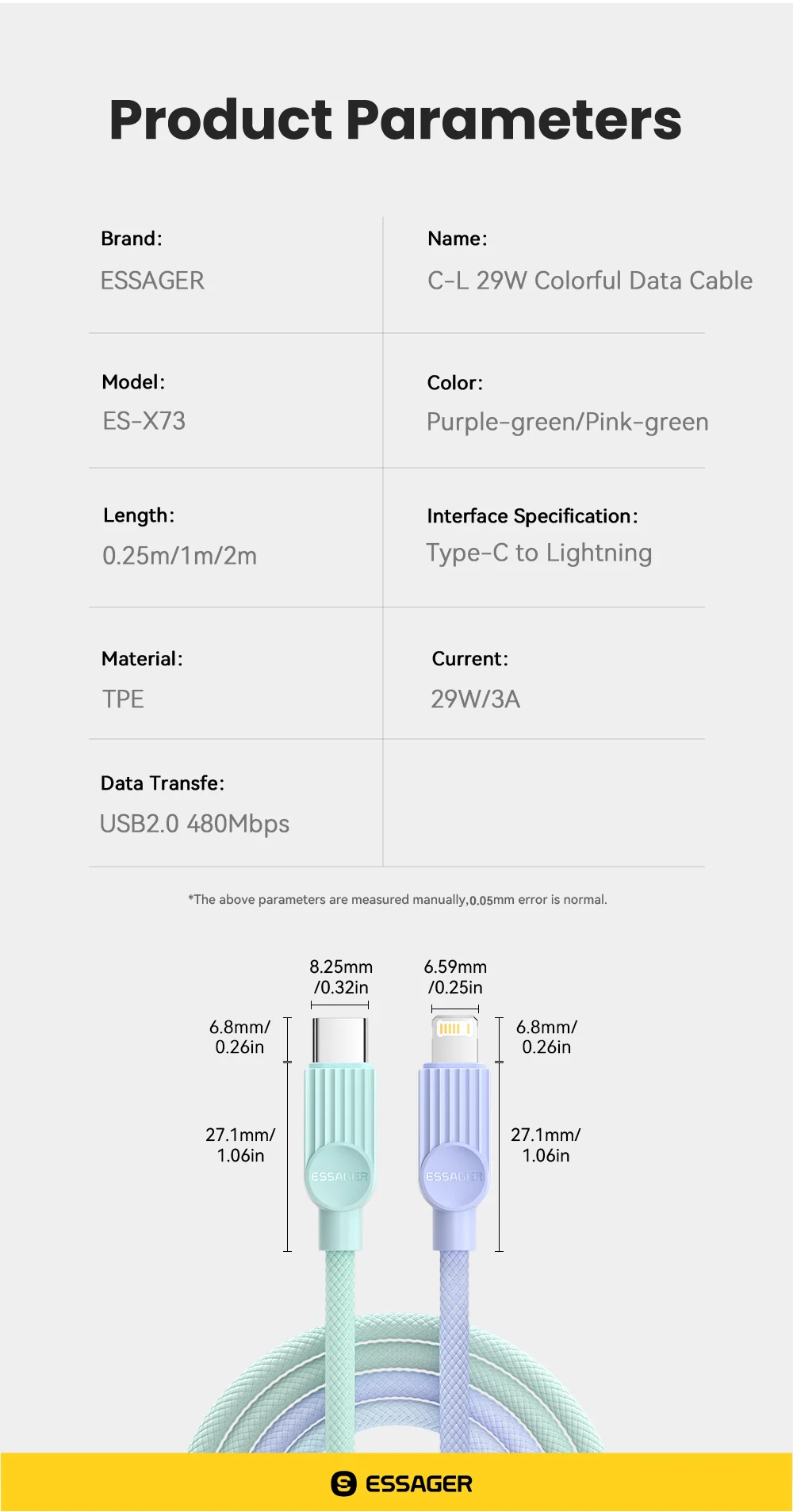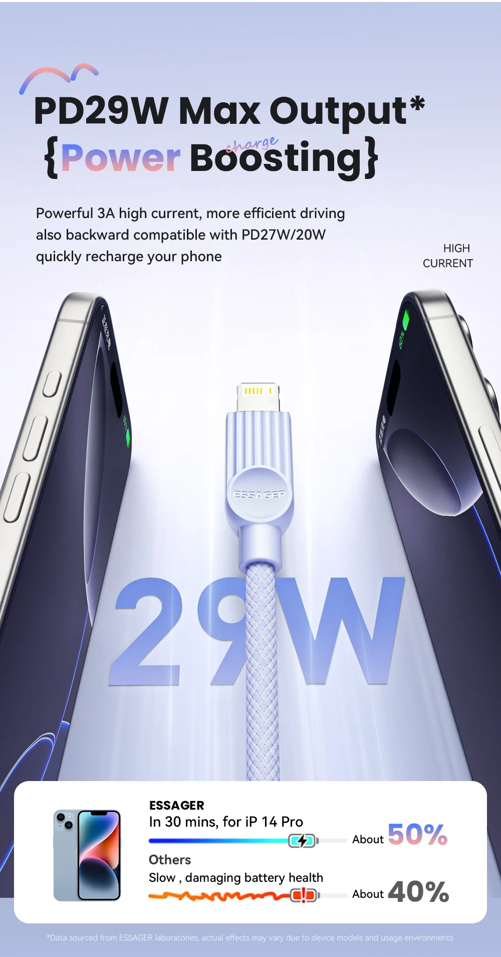 Essager USB C Color Cable For iPhone 14 13 12 11 Pro Max Xs iPad Macbook Wire 29W PD Fast Charging Type C To Lighting Data Cord