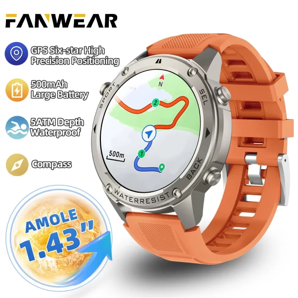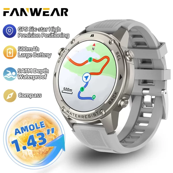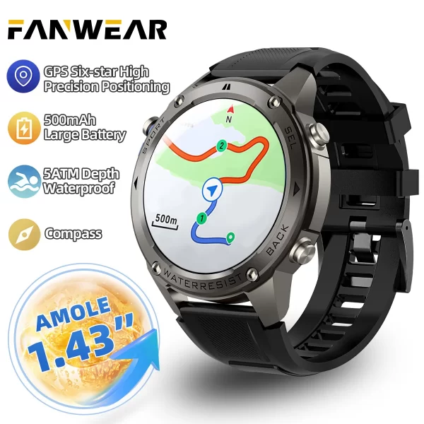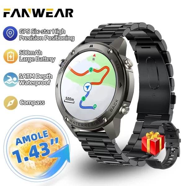 For Xiaomi Huawei Men GPS SmartWatch 2024 New Bluetooth Call 1.43inch AMOLED Compass 500mAh Battery 10ATM Waterproof Smart Watch