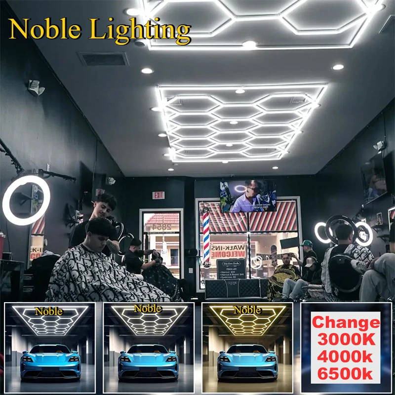 3000K 4000K 6500K Change Honeycomb Hex Light Hexagon LED Lighting for Garage Workshop Lighting Car Detail for Car Beauty Station