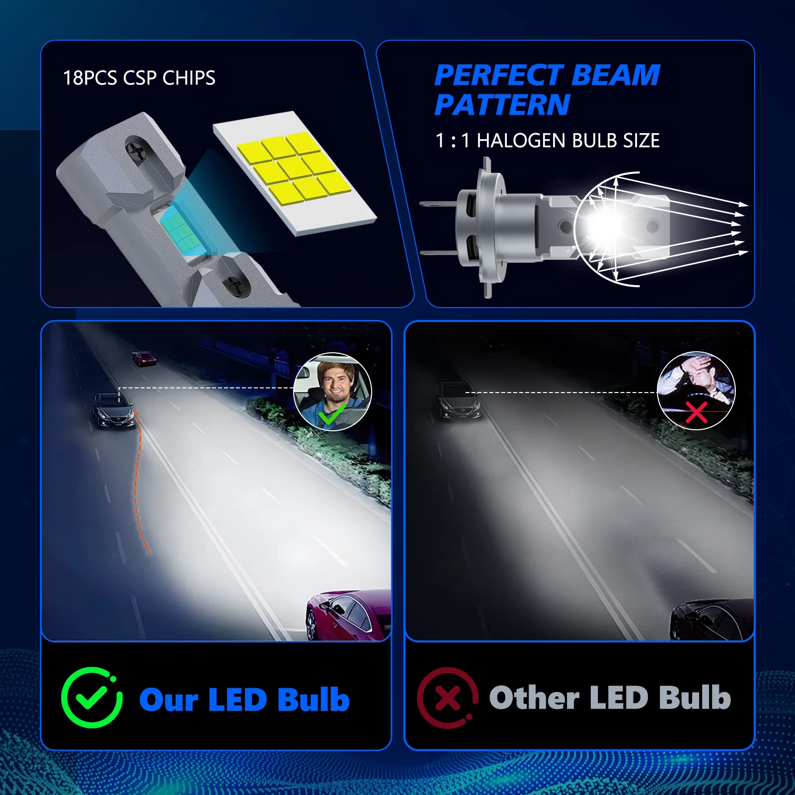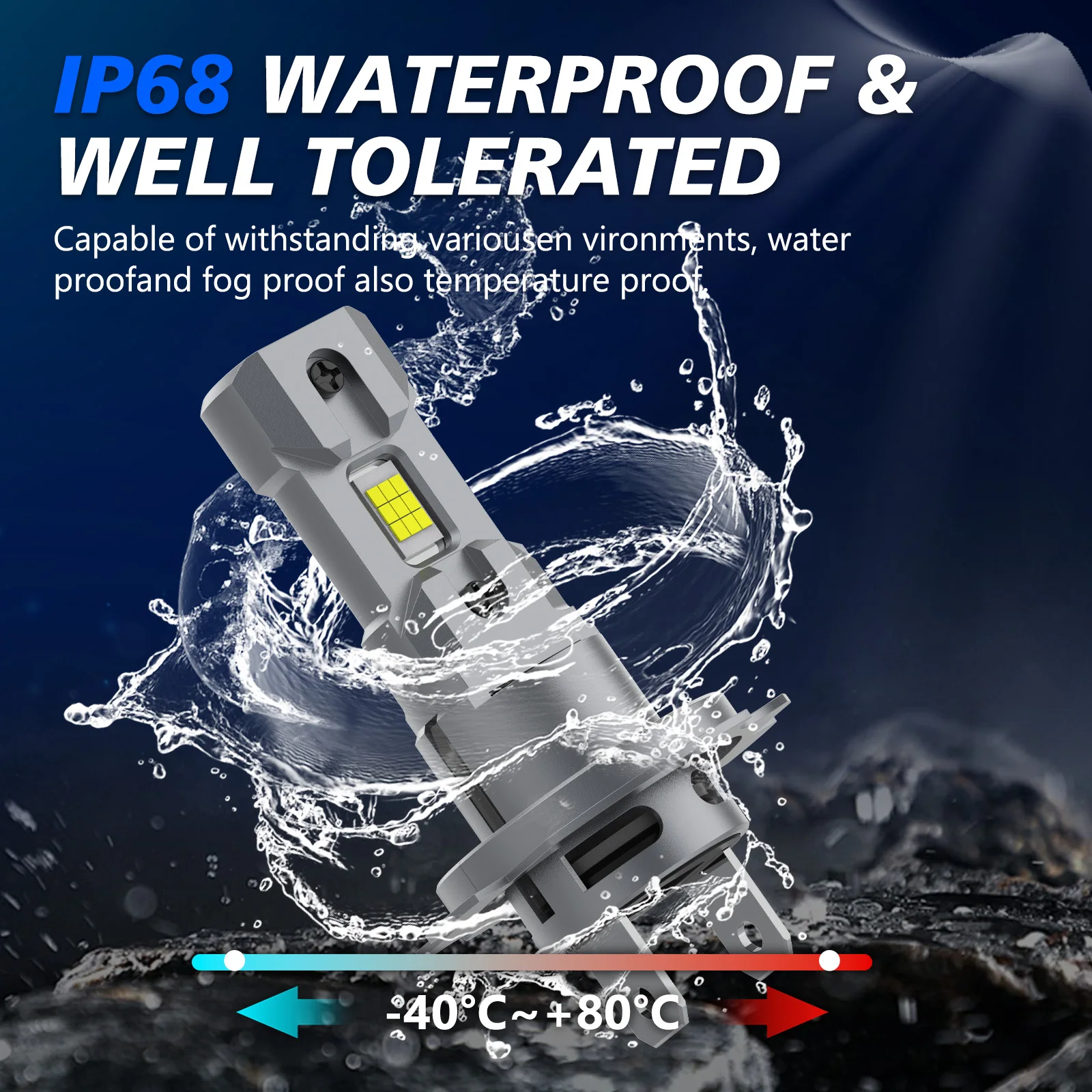 6063 aviation-grade aluminum lamp body, IP68 waterproof rate ensure LED bulbs 50,000 hours of continuous lighting, even on rainy days or other bad weather.