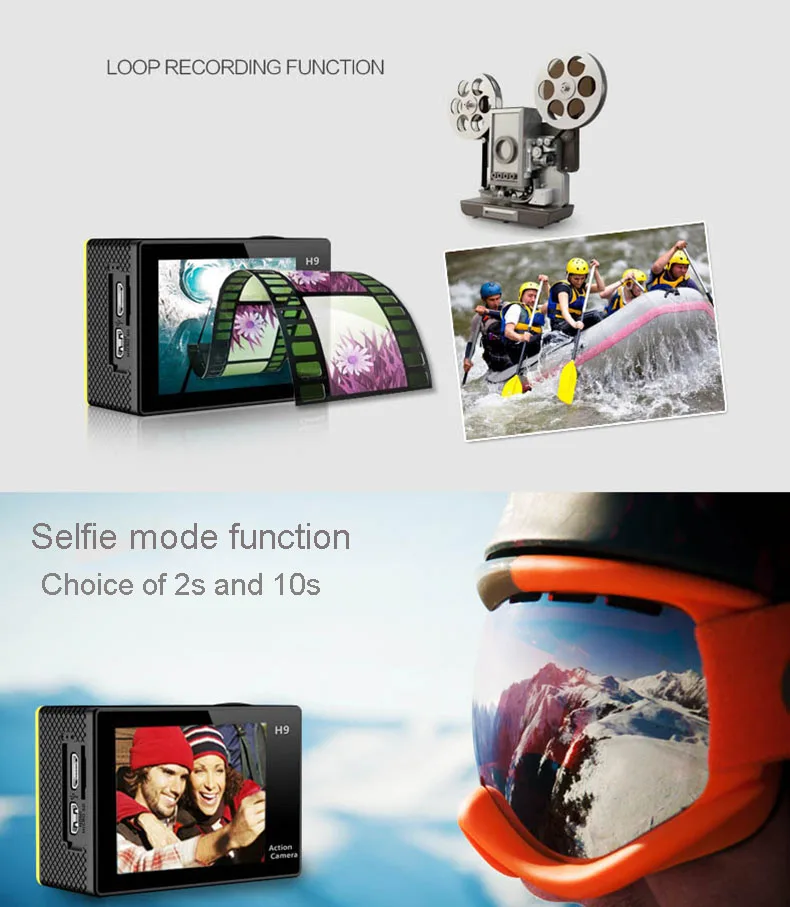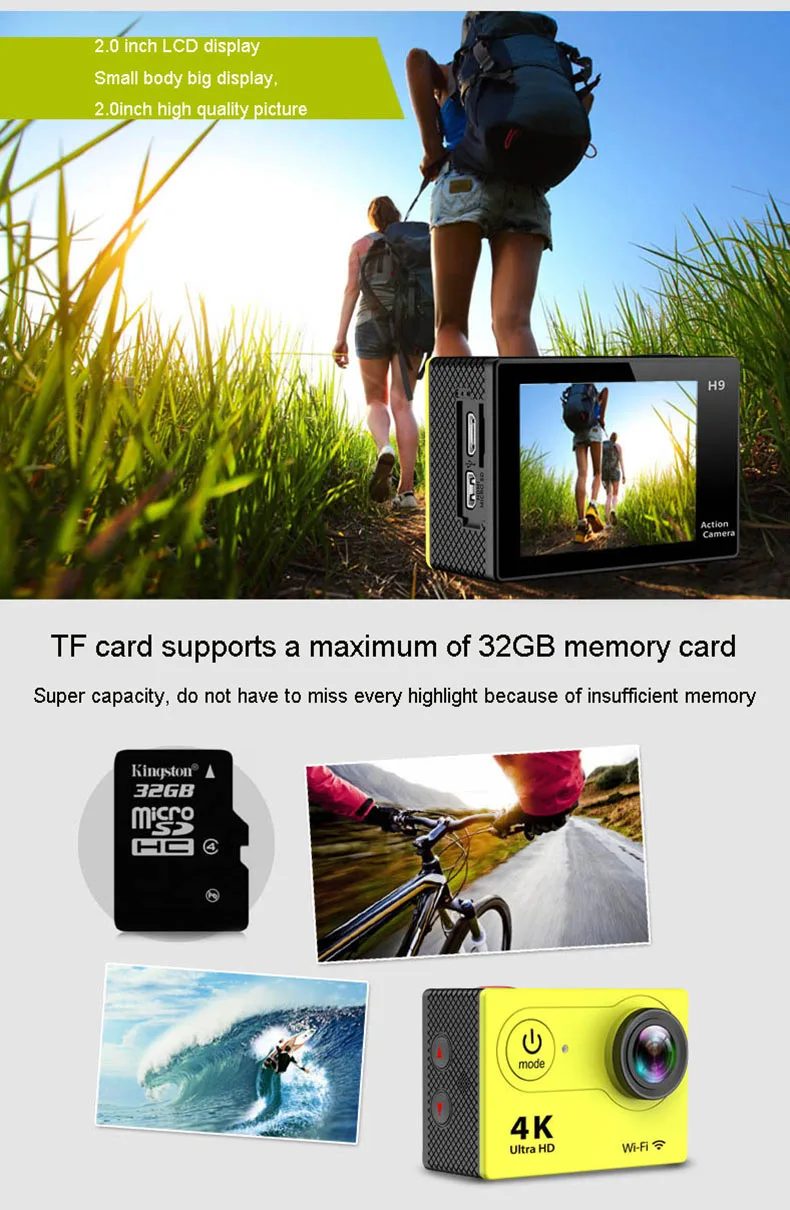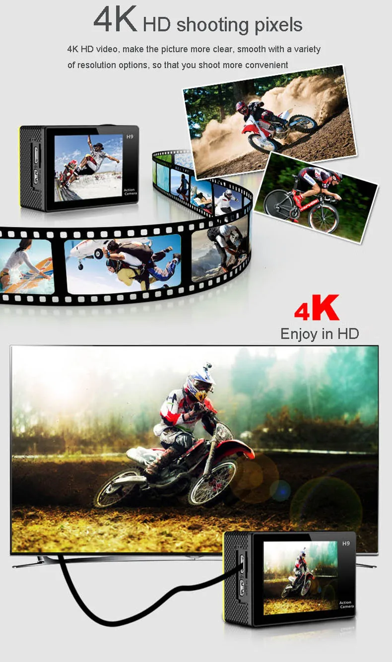 H9 Action Sport Camera Ultra HD 4K / 30fps 1080P WiFi 2.0″ 170D Underwater Waterproof Cam Helmet Vedio Go Pro Without HDMI