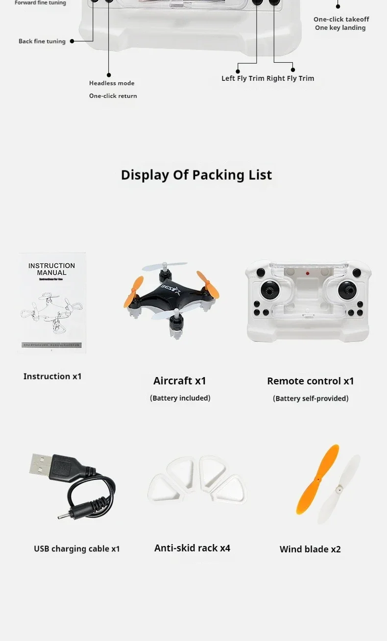 HC723 Mini Drone 2.4G Remote Control Quadcopter USB Charging Light Aerial Photography Fixed Height Aerobatic Tumbling Quadcopter