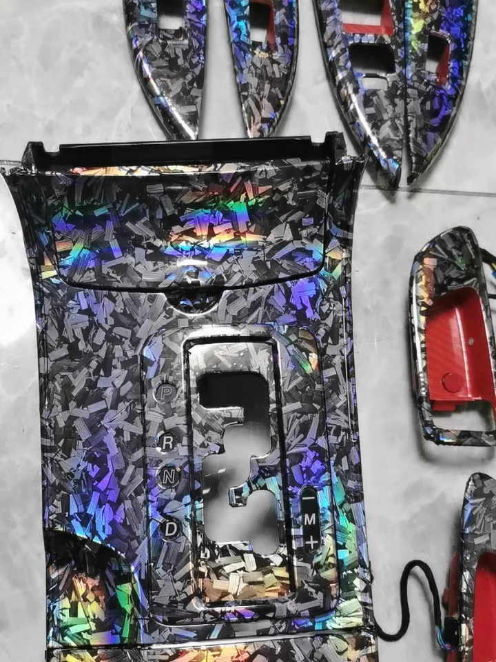 High Glossy Laser Rainbow Holographic Forged Carbon Fiber Car Wrap Vinyl for Motorcycle Stickers Car Body Color Change Film