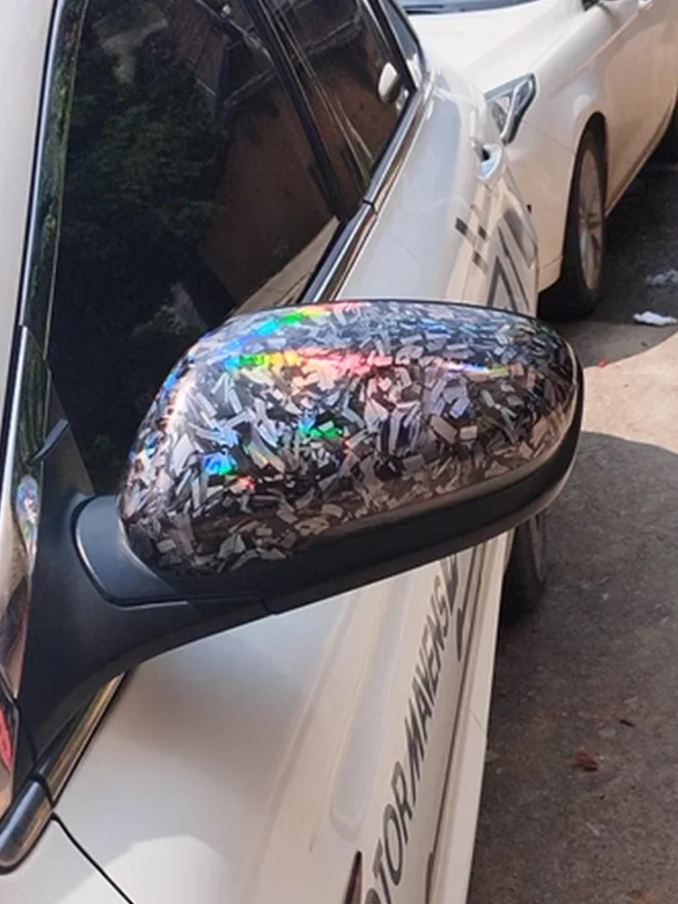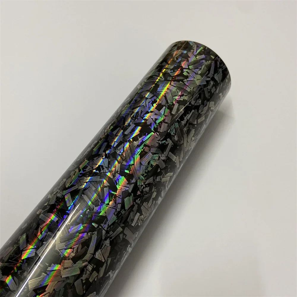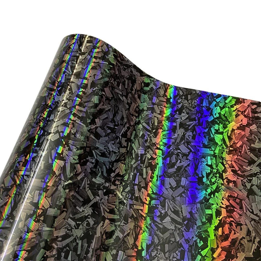 High Glossy Laser Rainbow Holographic Forged Carbon Fiber Car Wrap Vinyl for Motorcycle Stickers Car Body Color Change Film