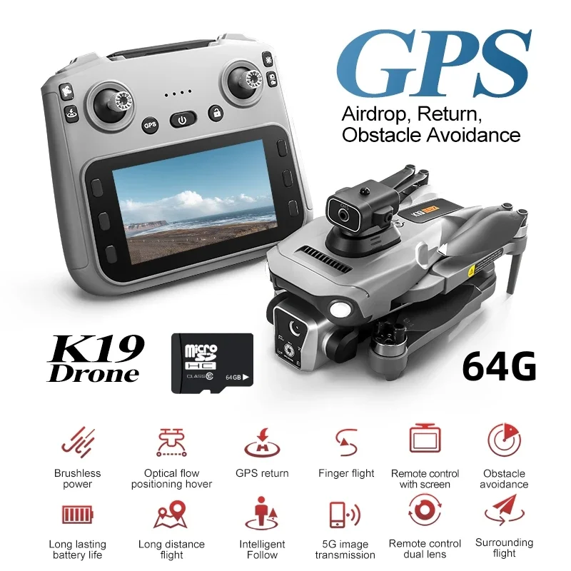 K19 Max 360°GPS Drone with 8K 4K HD Camera Obstacle Avoidance RC Dron WiFi FPV Brushless Foldable RC Quadcopter