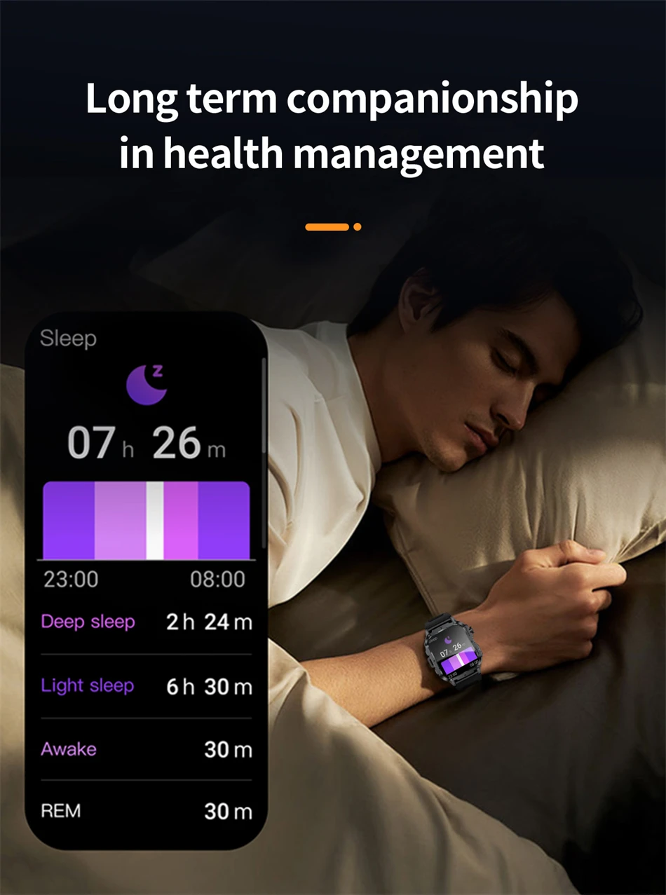 Sleep monitoring: Detailed recording and analysis of sleep data, providing recommendations for improving sleep quality.
