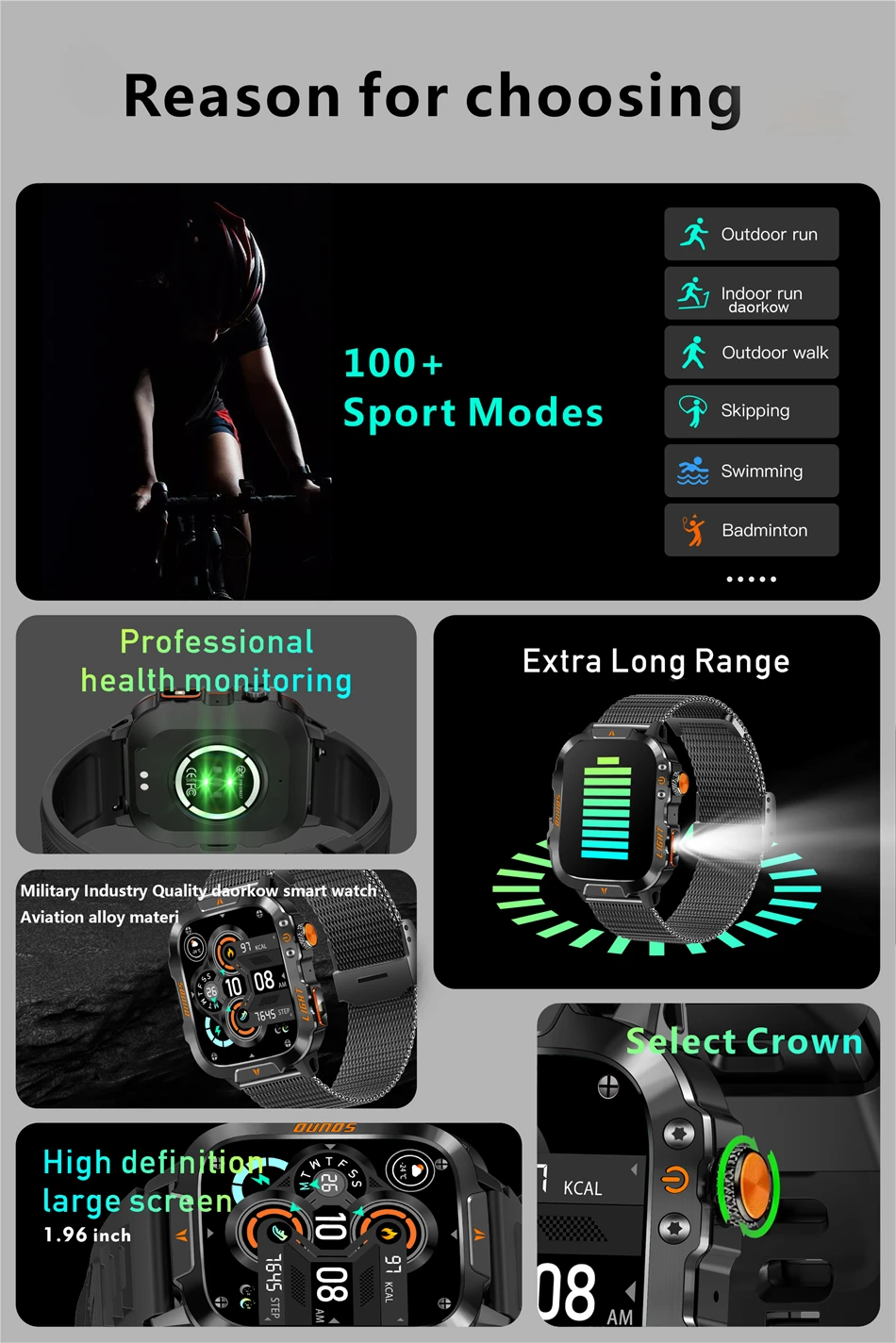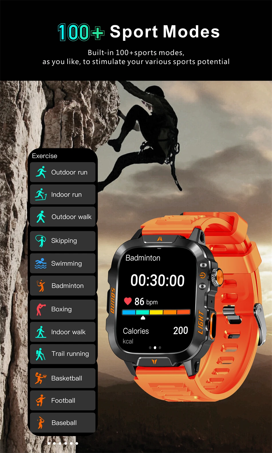 Multiple sports modes: Provides over 100 sports modes, including running, cycling, swimming, etc., to meet different sports needs.