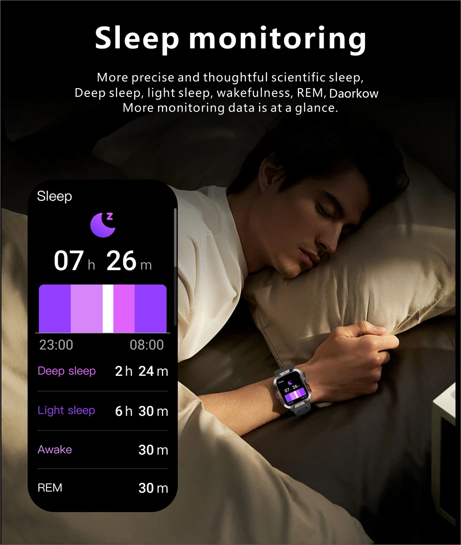 Comprehensive health monitoring: supports heart rate monitoring, blood oxygen saturation (SpO2) measurement, blood pressure monitoring, and sleep monitoring to help comprehensively understand one’s own health status.