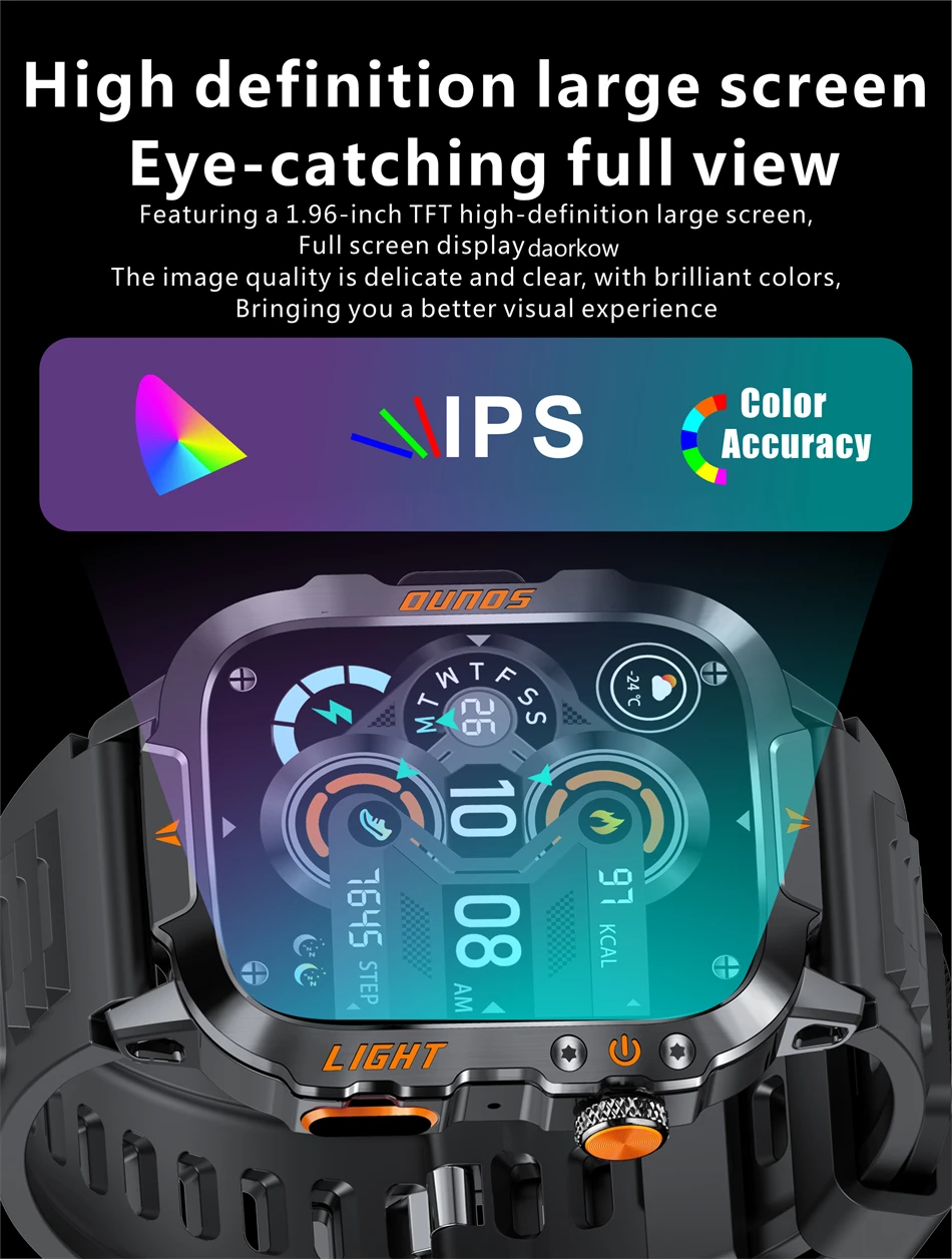 LIGE 1.96-inch Screen Rugged Military Smart Watch Men Outdoor Watch lP68 Waterproof Bluetooth Call Smartwatch For Android lOS