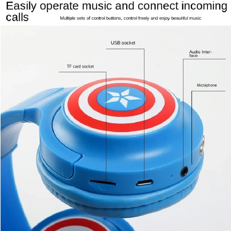 New 2023 iron Man Bluetooth Headphones Over-Ear Wireless Stereo Earphones Cartoon Spiderman Iron Man Captain Headset with Mic