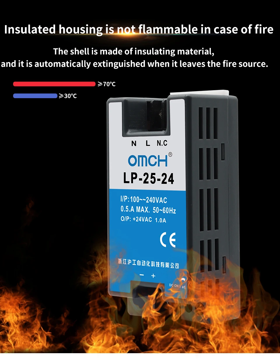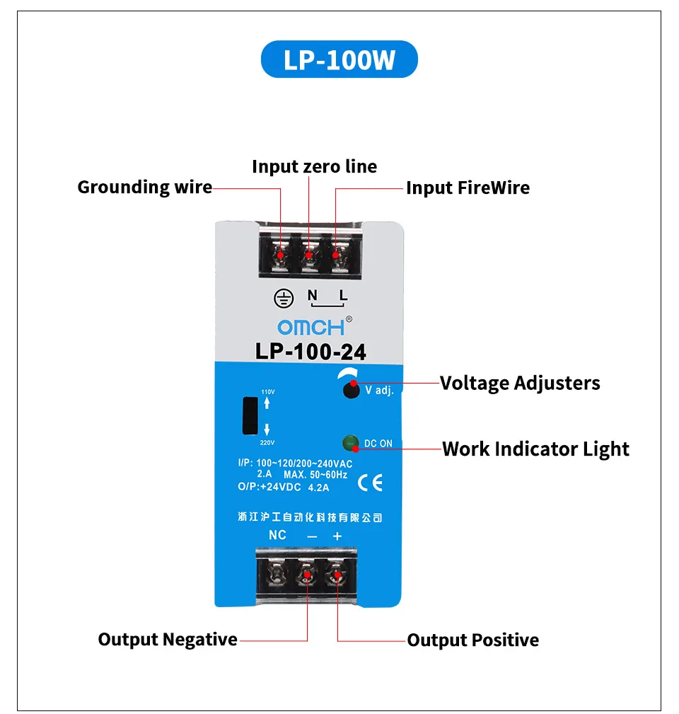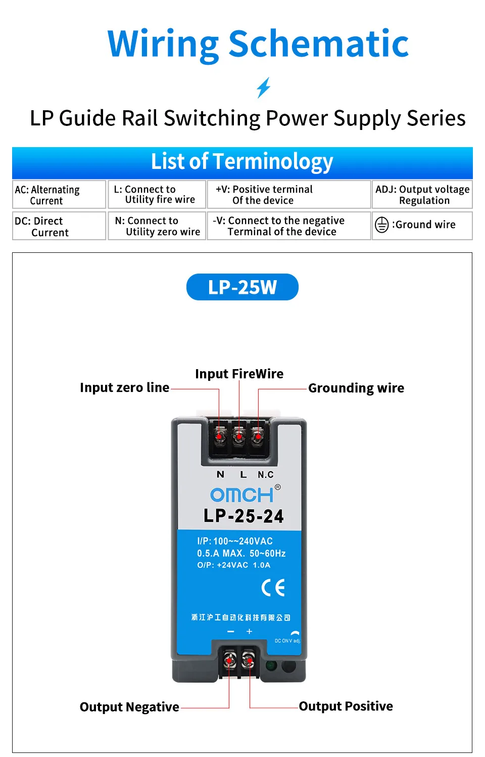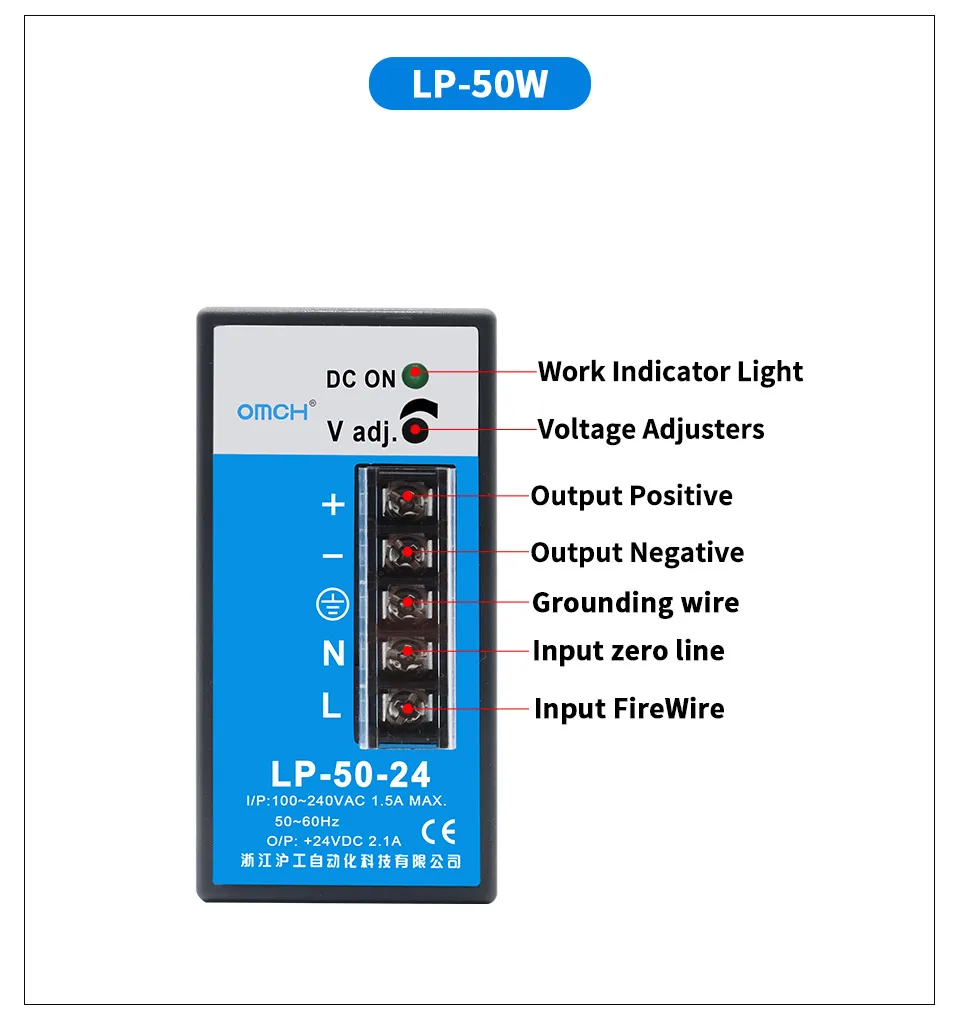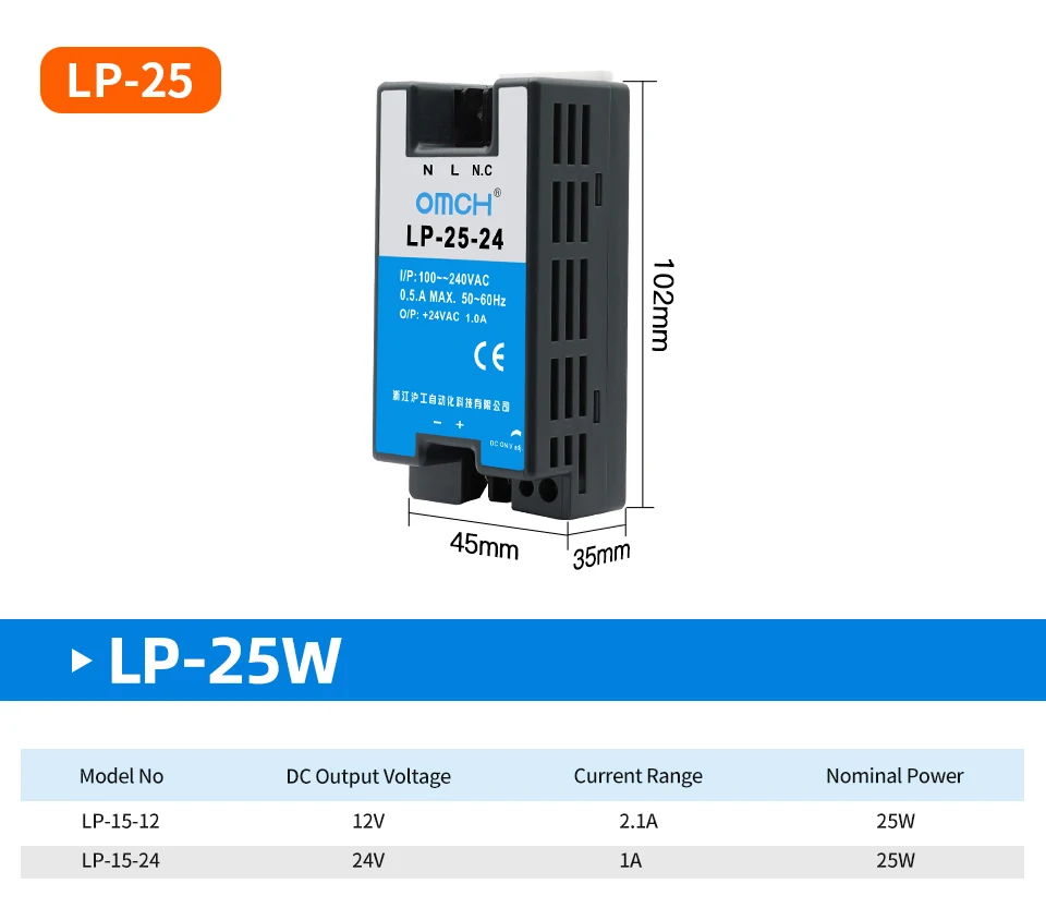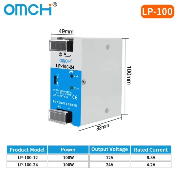 OMCH Din-rail Digital Display LP-25W/50W/100W/150W/300W/500W Output 12V 24V Input 100-240VAC Output Switching power supply SMPS