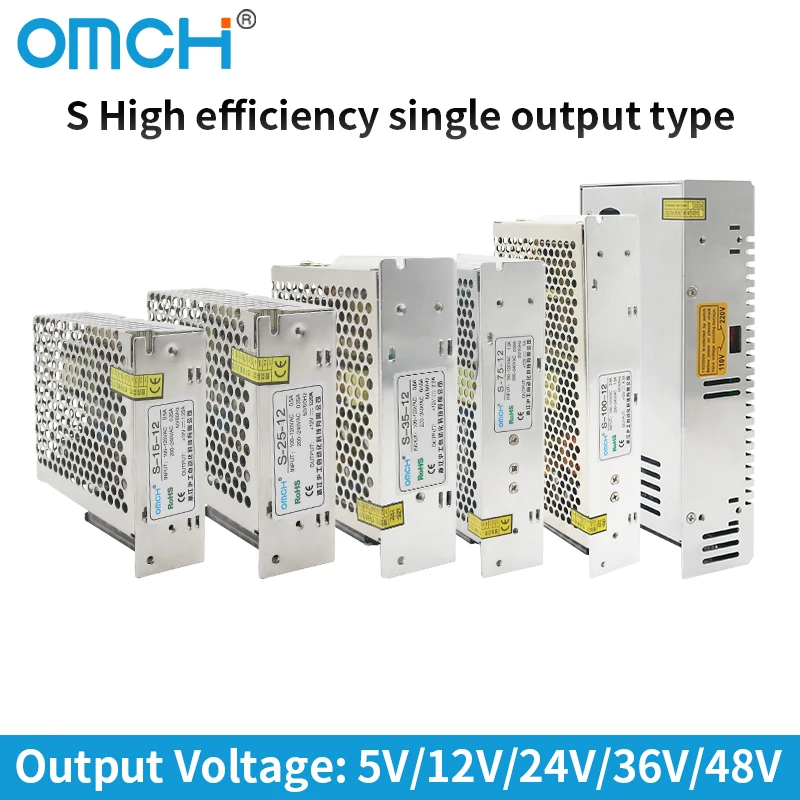 OMCH S Series Switching Power Supply 15/25/35/50/60/75/100/120/145/150/200/201/250/300/350/400W 5V/12V/24V/36V/48V AC to DC SPMS
