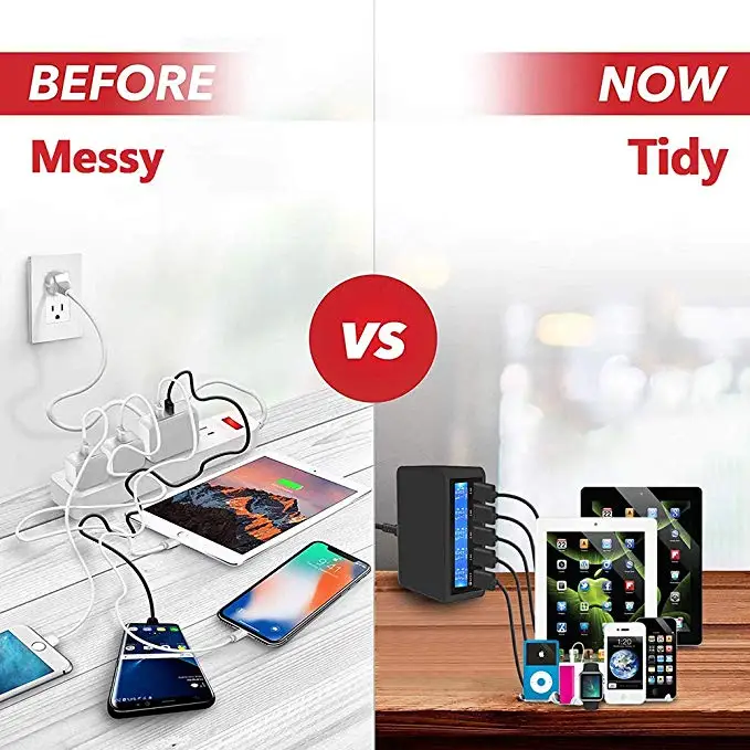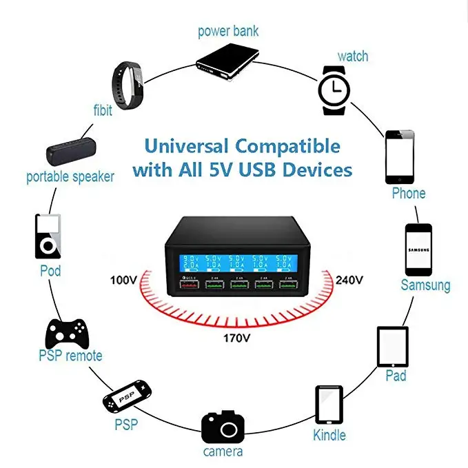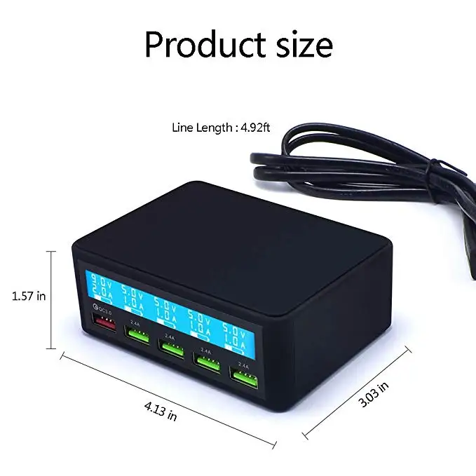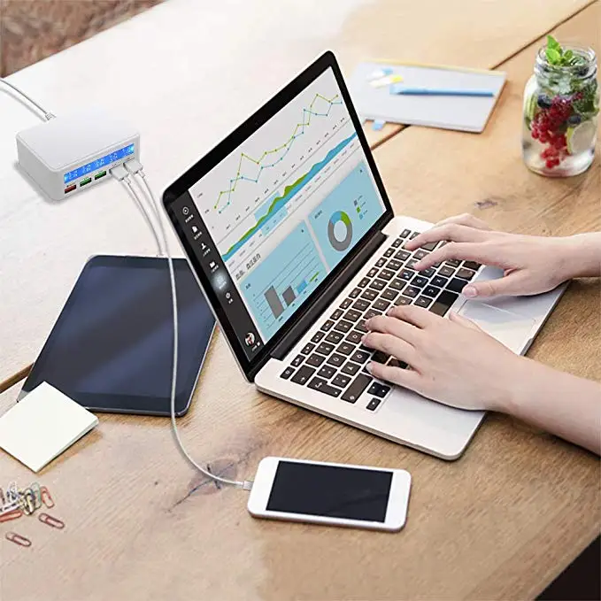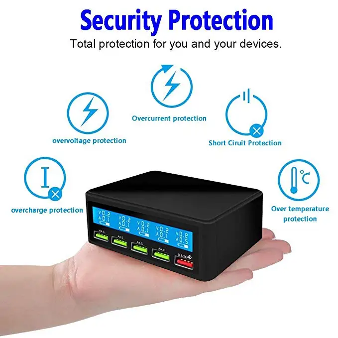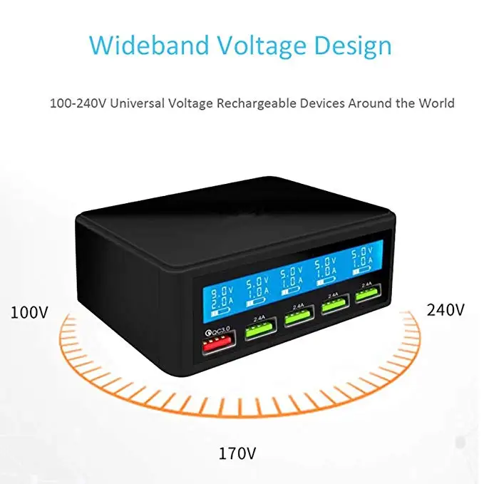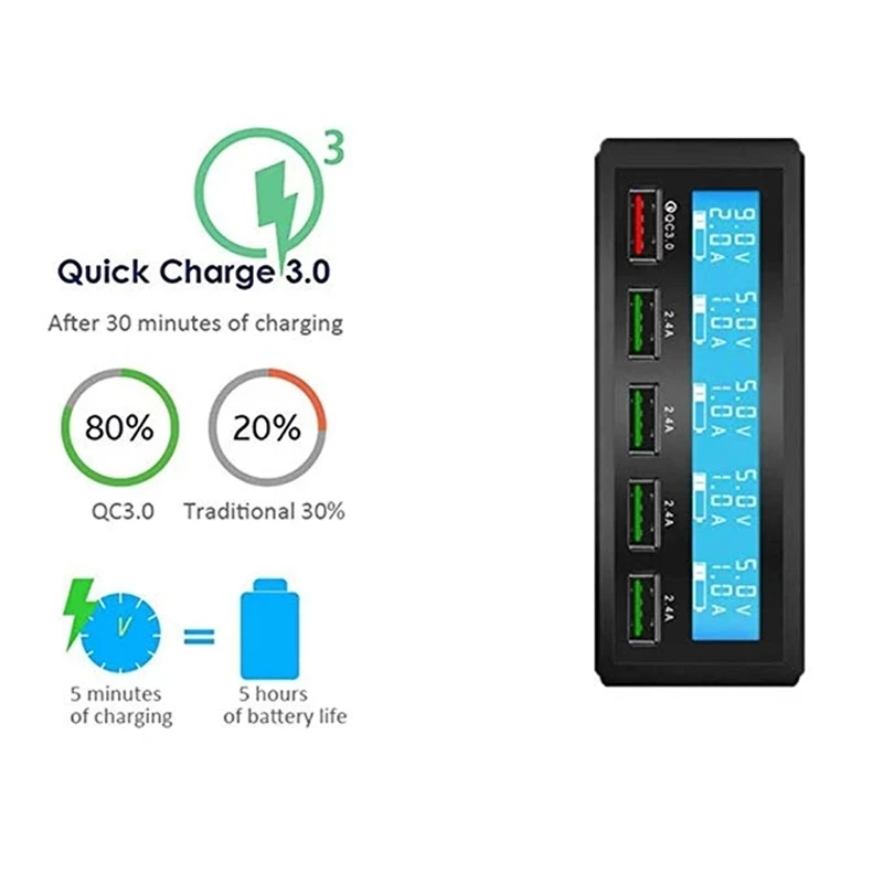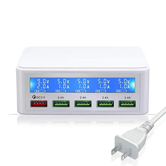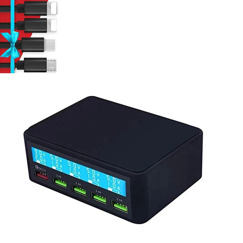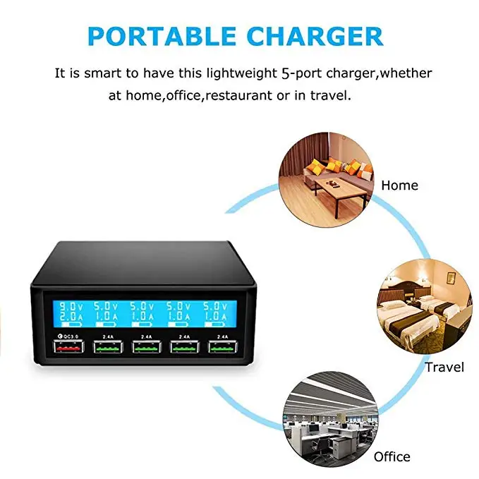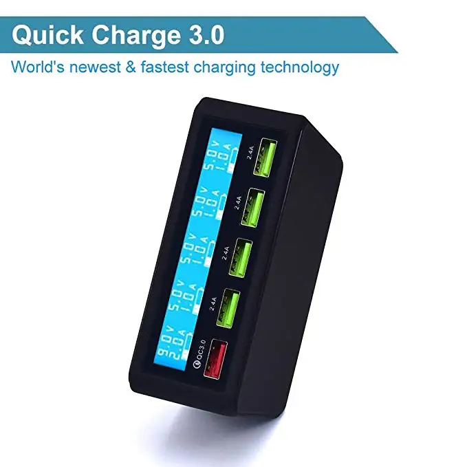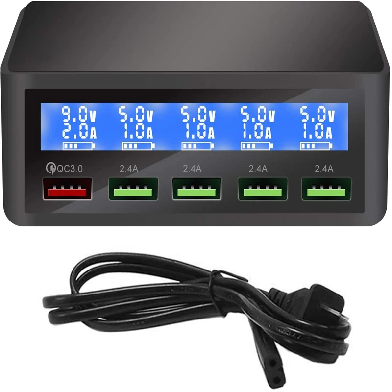 QC 3.0 Quick Charger Portable Multi 5 Port USB LCD Display 50W Fast Carregador For Iphone Xiaomi HuaWei Power Bank