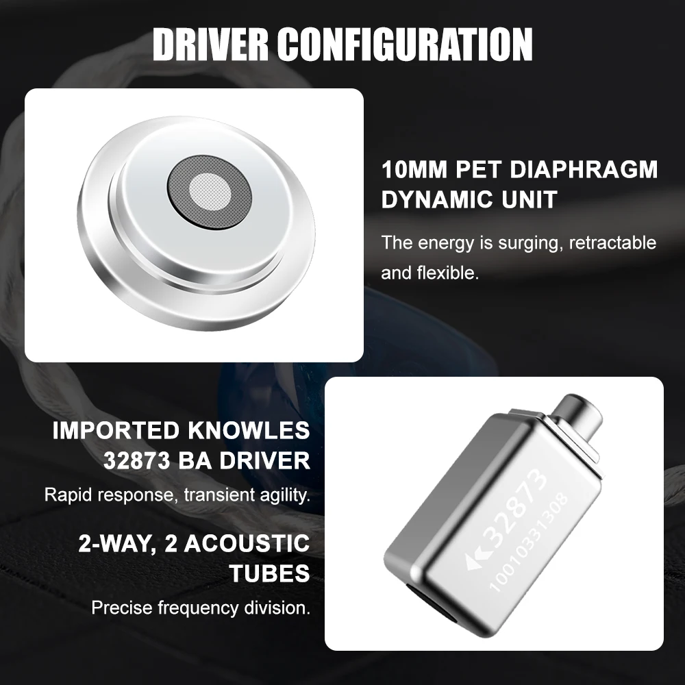 8. Driver unit: 1DD+1 Knowles BA