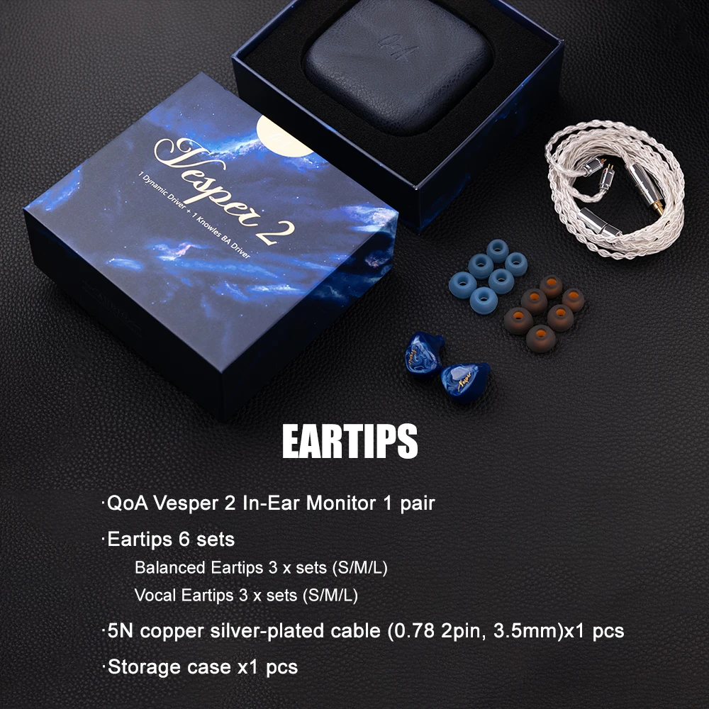 QoA Vesper 2 In Ear Headphones 1DD+1BA 0.78mm3.5MM 2Pin Detachable Cable HiFi DJ Music Sport Hybrid Driver IEMs Monitor Earphone