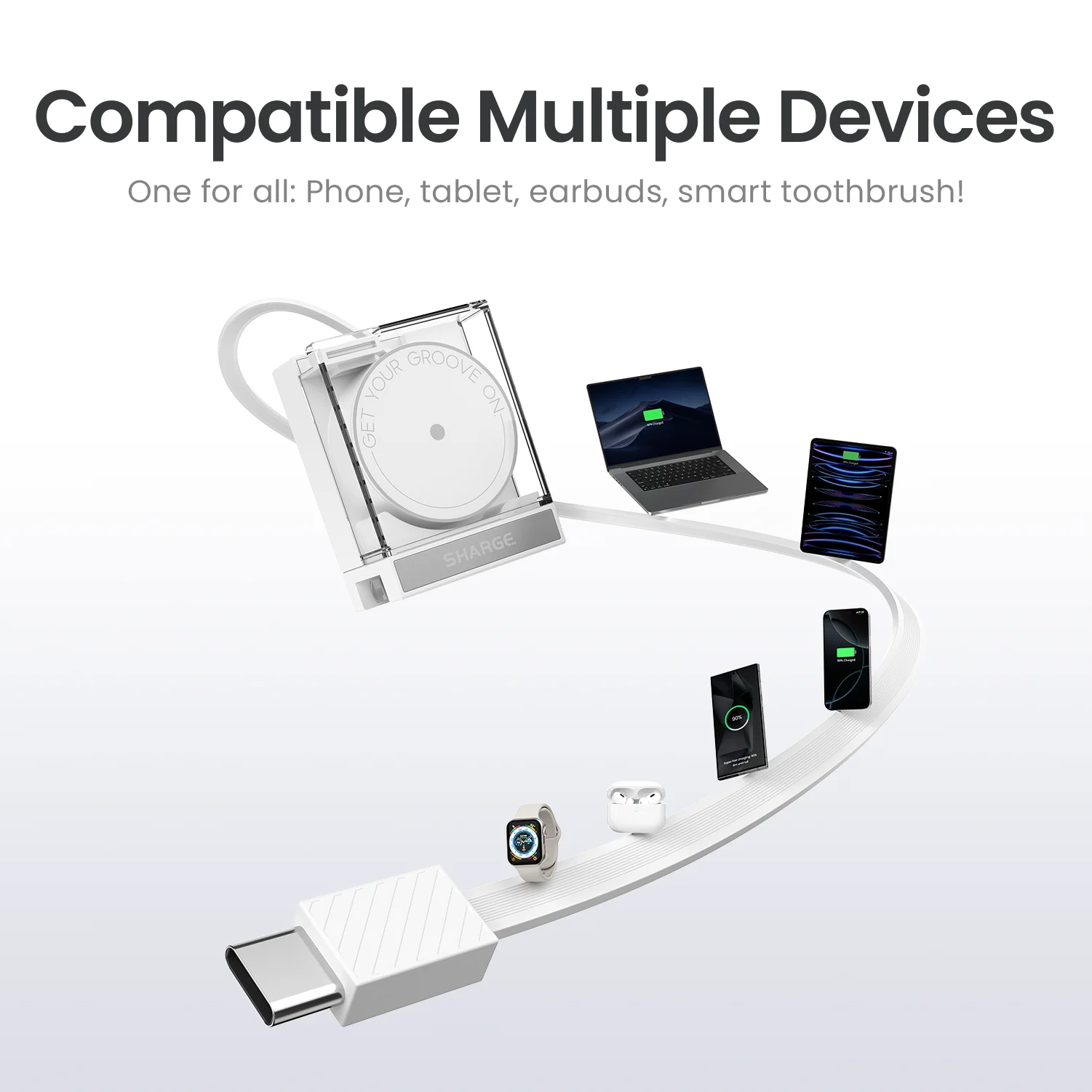 Compatible with 1000+ devices including displays, game consoles, speakers, laptops, tablets, phones, smartwatches, earbuds and more.