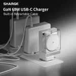 SHARGE 65W GaN Charger PD3.0 Type C QC3.0 2.0 Quick Charge Built-in 70cm Fast Charging USB-C Cable for iPhone16 MacBook iPad Pro