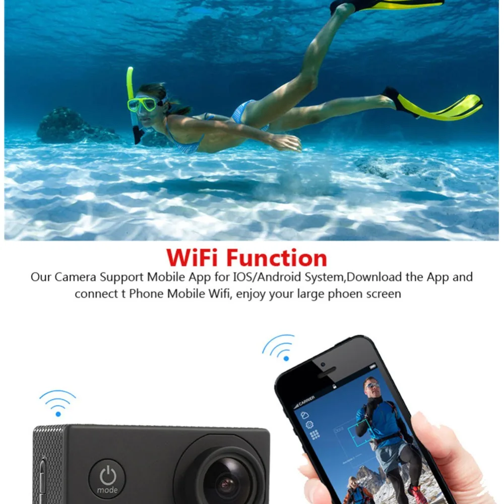 Ultra HD 4K Action Camera 30fps/170D Underwater Helmet Waterproof 2.0-inch Screen WiFi Remote Control Sports go Video Camera Pro
