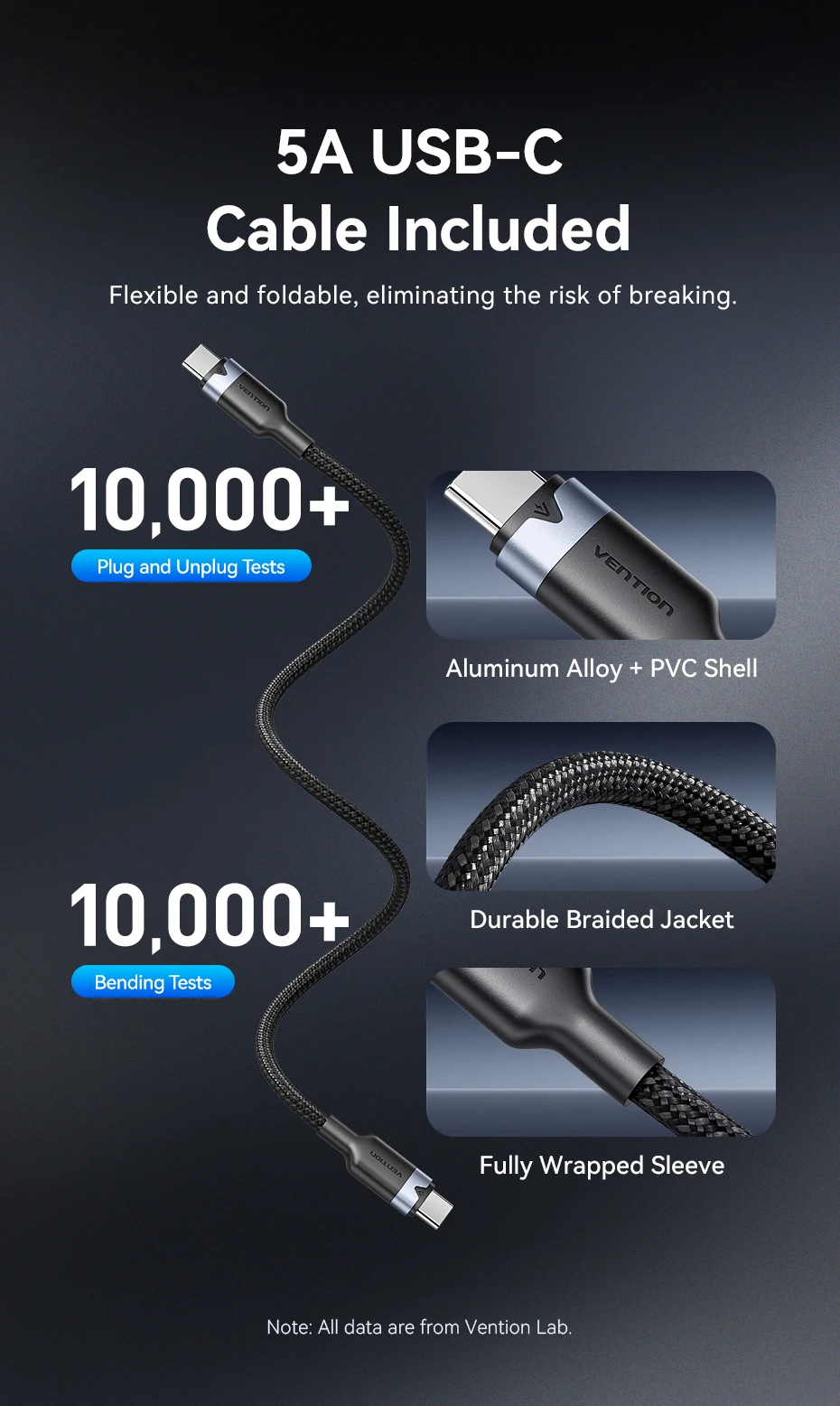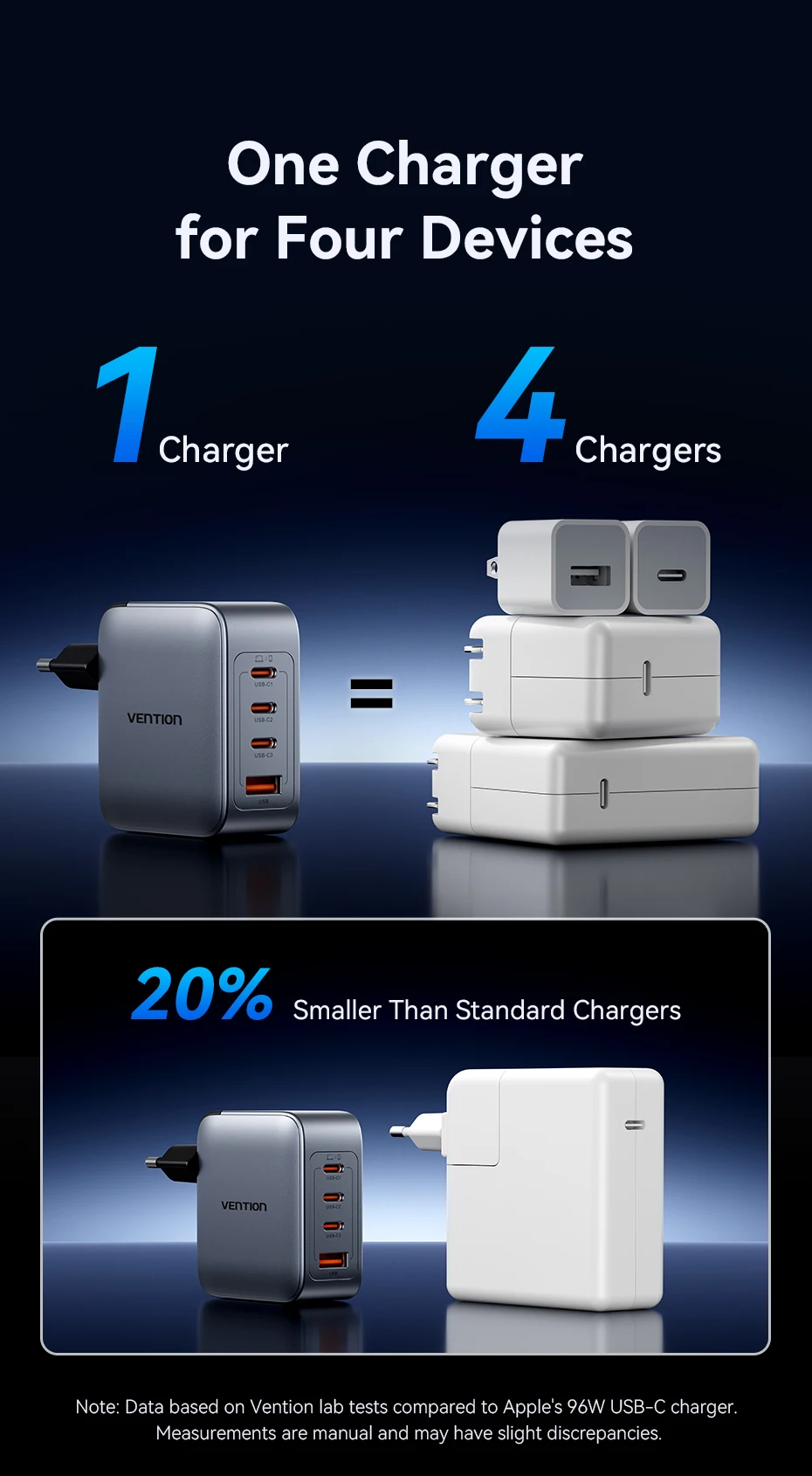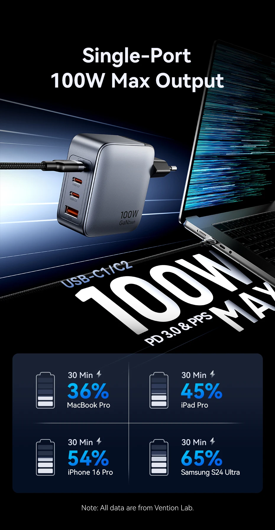 Vention 100W USB GaN Charger USB Type C Quick Charge 4.0 3.0 Fast Charging for iPhone 16 15 14 13 12 Xiaomi Huawei USB C Charge
