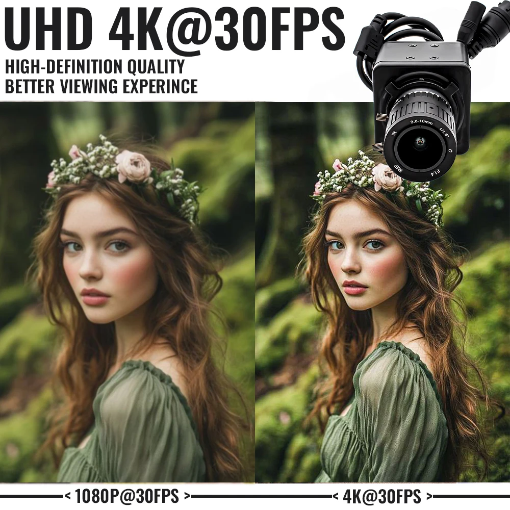 WGWK 4K IP Camera 8MP 30FPS CMOS IMX415 POE48V High Quality CS Mount 3.6-10mm 5-50mm Varifocal Zoom Lens CCTV Industrial Webcam