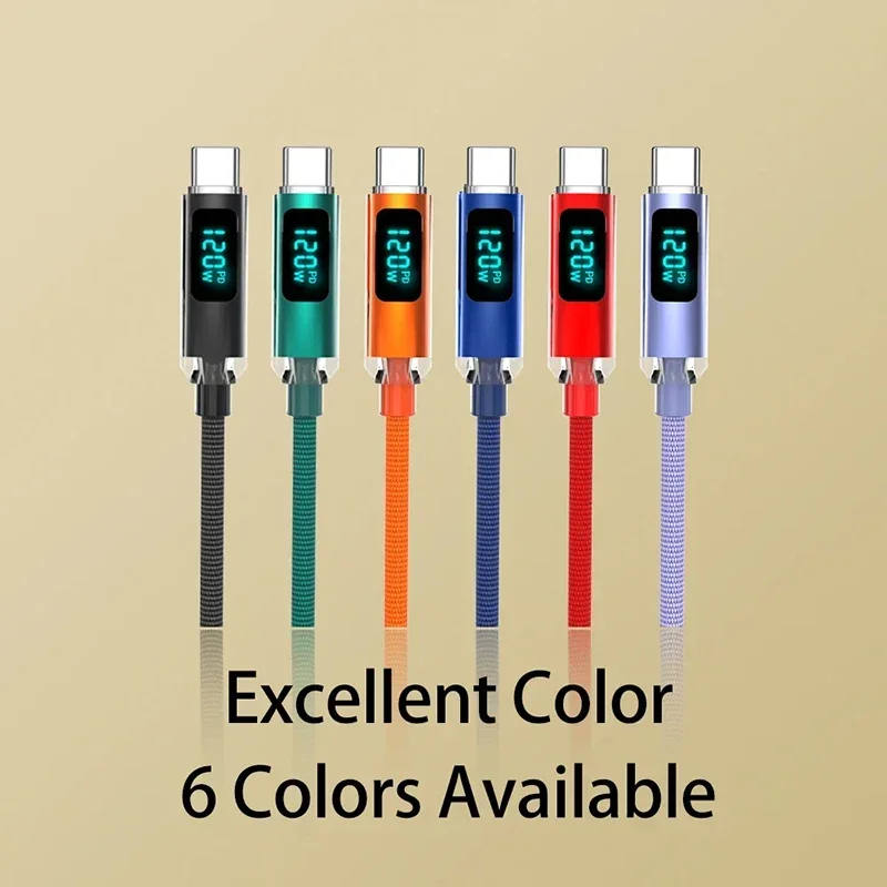Xiaomi 120w Cable USB A To Type C Super Fast Charging Cable Digital Display For Huawei Oppo Oneplus Poco Redmi Data Cable 2025
