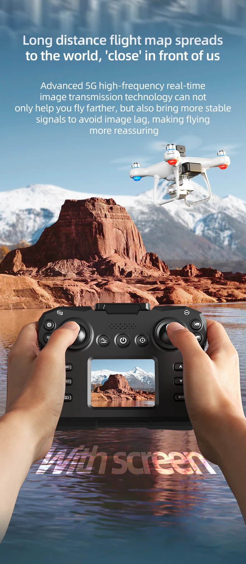 10. With a screen remote control, you can directly see the transmission screen, get rid of your phone, and the remote control has a built-in battery, making flying more free.