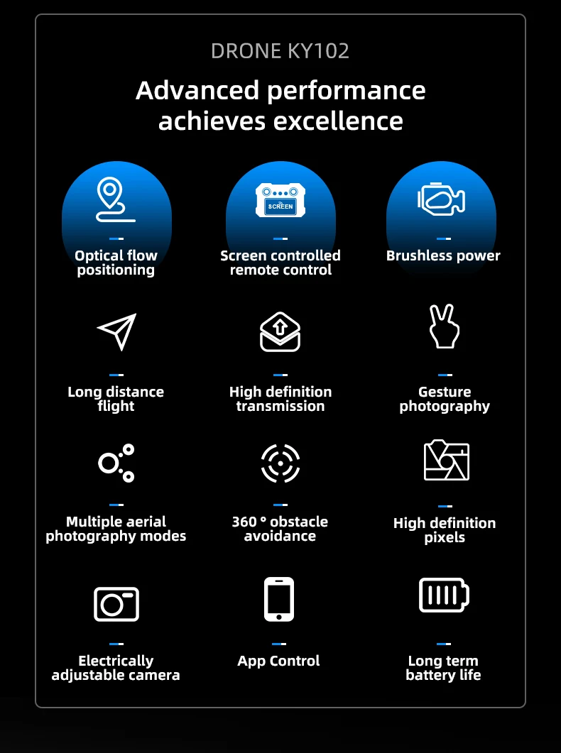 6. Gesture photography, optical flow positioning, brushless motor, ultra long battery life, equipped with obstacle avoidance head, can stop in case of obstacles without colliding with them